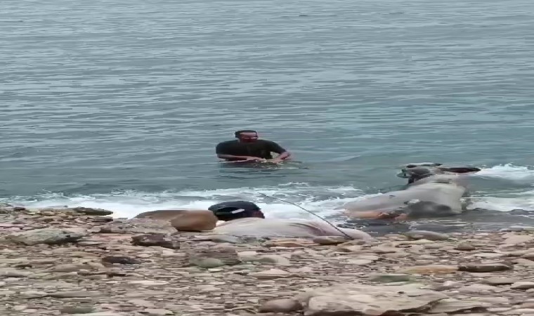 Hatay’da tırın dorsesinden kaçan angus, ekiplerin uzun süren kovalamacası sonrası denizde yakalandı.