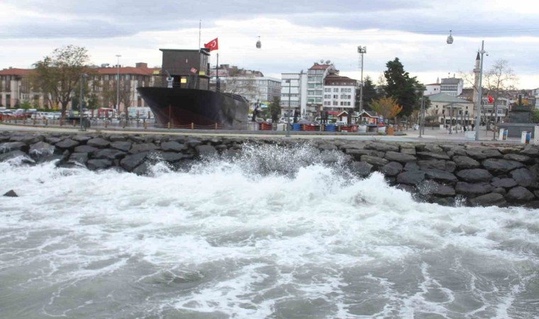 Meteoroloji Genel Müdürlüğü’nün yaptığı uyarının ardından Ordu’da dalgalar kıyıya yaklaştı.