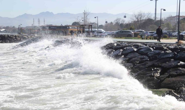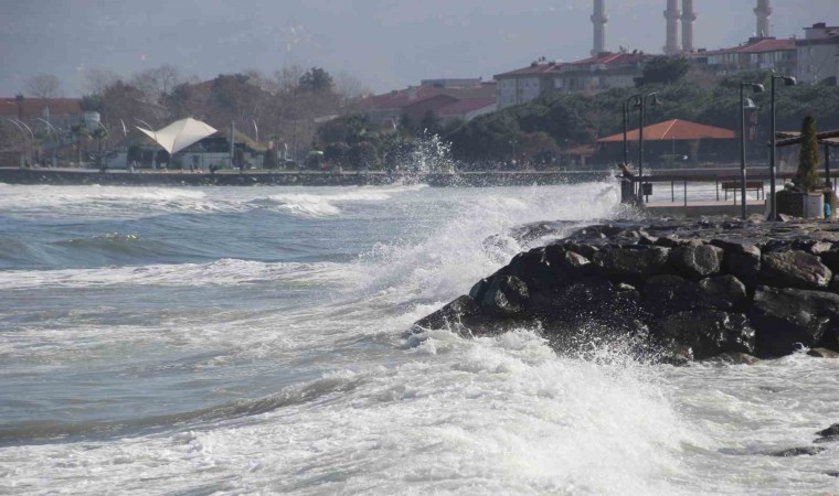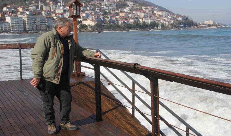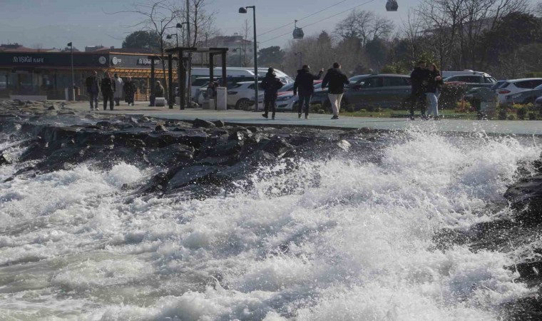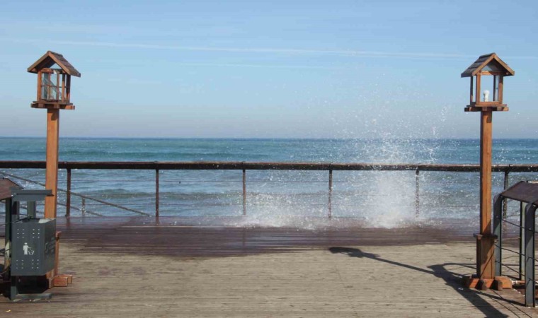 Ordu’da denizde etkili olan rüzgar nedeniyle dalgalar kıyıya ulaştı.