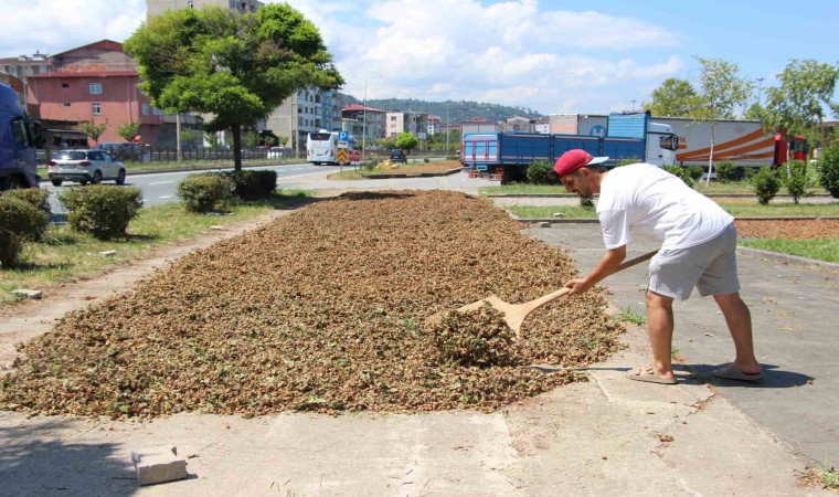 Karadeniz’de fındık hasadı halen sürerken, Trabzon’da bazı üreticiler topladıkları fındığı Karadeniz Sahil Yolu’nun kenarlarına sererek kurutmaya başladı.