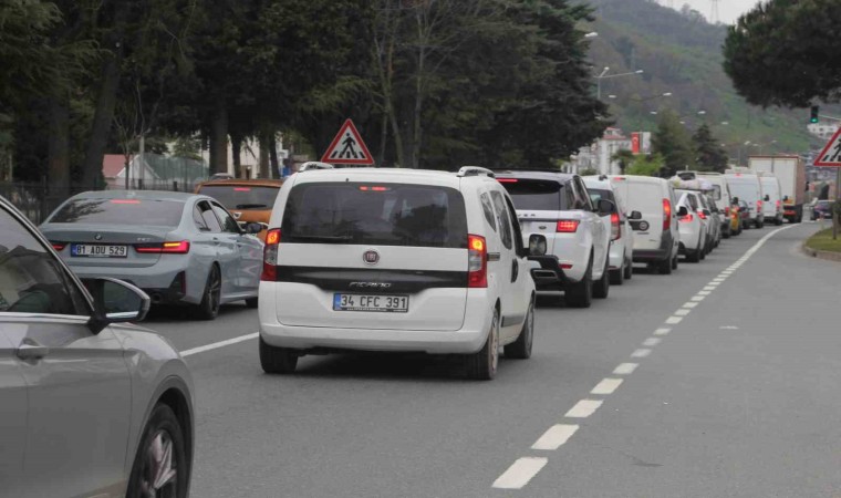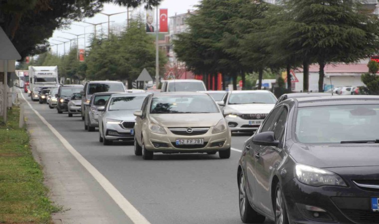 Ordu’da, Ramazan Bayramı tatilini memleketlerinde geçirdikten sonra dönüş yoluna geçen gurbetçiler, Karadeniz Sahil Yolu’nda trafik yoğunluğu oluşturdu.