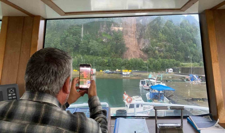 Heyelan sırasında limanda teknesinde bulunan Celal Özkan, yaşananları saniye saniye cep telefonu ile kayıt etti. Bir firmada kaptanlık yapan Celal Özkan yaşananları anlatarak "Limanda oturuyordum. Aşırı yağıştan dolayı ses gelince. Heyelan olduğunu gördük. Karayolundan sürekli araçlar geçiş halindeydi. Bölgemizde aşırı yağışlardan dolayı sorun oluyor. O anda telefonu aldım çekim yapmaya başladım. Tam o sırada bir ağaç devrildi heyelanla koparak yola düştü. O sırada geçen bir araç saniyelerle kurtuldu" dedi.