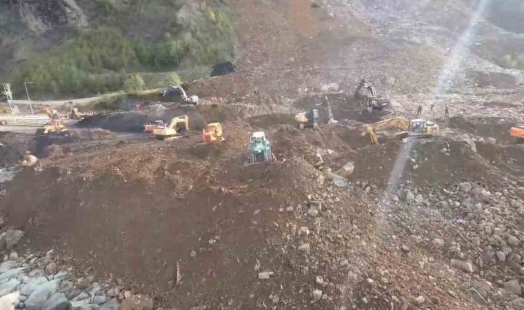 Artvin’in Arhavi ilçesinde gece saat 03.00 sıralarında Kıyıcık mevkisinde yaşanan heyelan, Karadeniz Sahil Yolu’nun ulaşıma kapanmasına neden oldu. Heyelan nedeniyle yamaçtan kopan dev toprak ve kaya kütleleri ile ulaşımın çift yönlü olarak ulaşıma kapandığı kara yolunda günün ilk ışıklarıyla birlikte çalışma başlatıldı. Rize’nin Fındıklı ve Artvin’in Arhavi ilçelerindeki her iki noktadan başlatılan heyelan temizleme çalışmalarında iş makinelerinin hummalı çalışması dron ile görüntülendi. Ekipler tarafından çevrede bulunan güvenlik kameralarının da incelenerek toprak altında araç olup olmadığının da araştırıldığı heyelan nedeniyle ulaşım, alternatif köy yollarından sağlanıyor. Karadeniz Sahil Yolu’nu aşıp, denize kadar ulaştığı görüntülenen heyelanın ardından kara yolunun yaklaşık 200 metrelik bölümünün toprak ve taş yığınıyla dolduğu belirtildi.