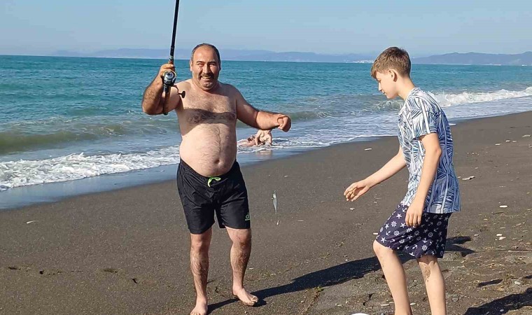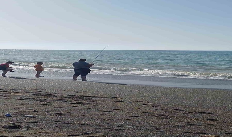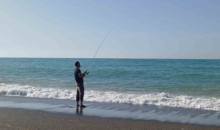 Oltasıyla balık tutmaya çalışan bir vatandaş, “Dalga olduğu için denize giremedik. Balığı deneyelim dedik. Maşallah güzel balık aldık, tutmaya devam ediyoruz” dedi.