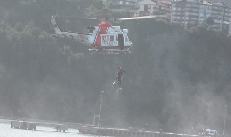 Amasra Limanı mendirekte izleyen vatandaşlar ve protokolün önünden sirenlerini açarak, tören geçişi yapan ekipler daha sonra ise kurtarma tatbikatı gerçekleştirdi. Senaryo gereği denizde bulunan 2 kişiyi kurtarmak için harekete geçen ekiplerden önce kontrol botu ile olay yerine hareket eden dalgıçlar denize atladı. Boğulma tehlikesi geçiren 2 kişinin yerini tespit eden dalgıçlar, bottan gönderilen su üstü insansız kurtarma aracıyla bir kişiyi kurtardı. Ardından istenen hava desteği üzerine gelen helikopterden sarkıtılan halat yardımıyla dalgıçlar tarafından ikinci kişi de sudan çıkarıldı.