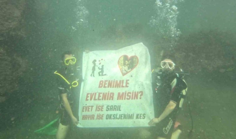 Dalış Eğitmeni Hakan Güney ise “Bu güzel ve mutlu günlerinde bizleri de aralarına aldıkları için kendilerine teşekkür ediyorum. Biz onları çok mutlu gördük, inşallah mutlulukları devam eder. Çok tatlı çiftimizin evlilik teklifi anlarına biz de şahit olduk” şeklinde konuştu.