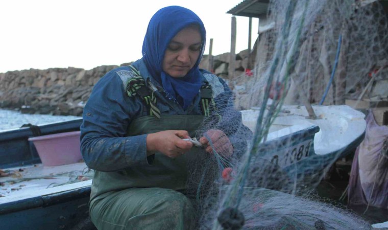 Balıkçılık yapan eşine sürekli olarak yardım ettiğini söyleyen Aynur Arslan, “Daha çok ağ temizleme ve ağ istifleme yapıyorum. Denize ağ kurmaya gidiyorum. Soğuk havalarda bir hayli zorlanıyoruz ama ekmek parası için çalışıyoruz” diye konuştu.