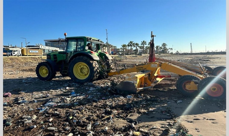 İlk olarak sahili gezerek kontroller gerçekleştiren ekipler, ardından kepçeler yardımıyla sahil boyunca topladıkları tonlarca çöp ile dalgalar sonucu denizden gelen çeşitli atıkları da kamyonlara yükleyerek bölgeden çıkardı.