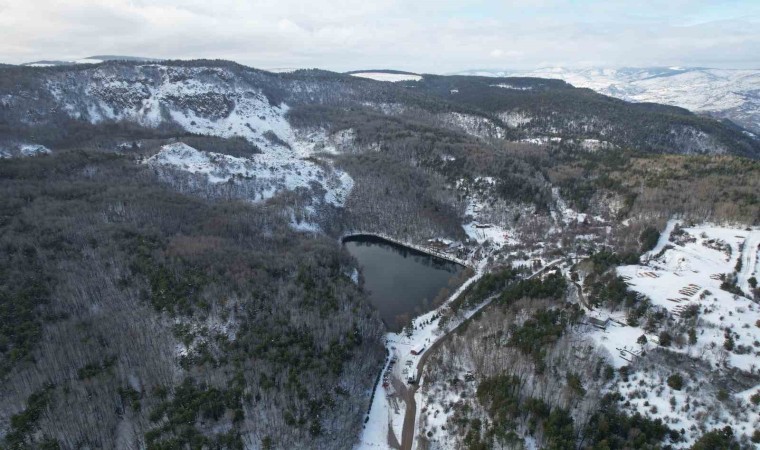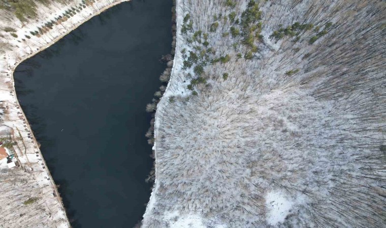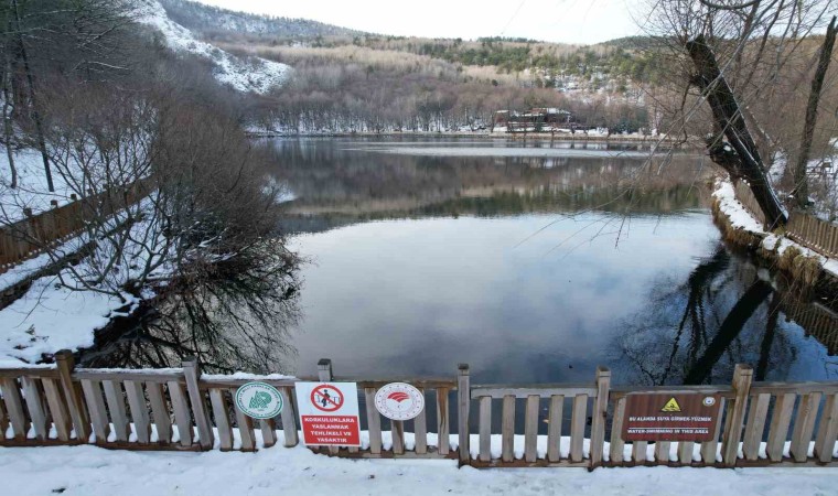 Ankara’nın Çubuk ilçesinde bulunan Karagöl Tabiat Parkı yağan karla beyaza büründü.