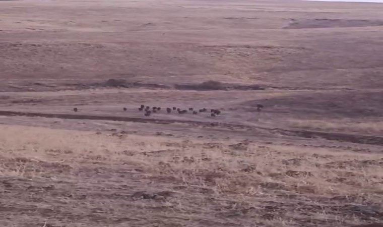 Elazığ’ın Karakoçan ilçesinde domuz sürüsünün araziye dalma anları kameraya yansıdı.