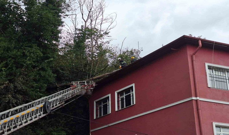 Olay yerine gelen itfaiye ekipleri devrilen ağacı çatıdan kaldırarak temizledi.