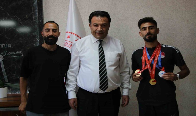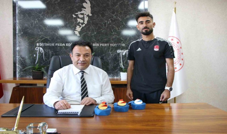 Çin’de düzenlenen 31. Dünya Üniversiteler Oyunlarında Atletizm Yarı Maratonda Dünya Şampiyonu olan Öğretmen Sezgin Ataç, İl Milli Eğitim Müdürü Bahameddin Karaköse’yi makamında ziyaret etti.