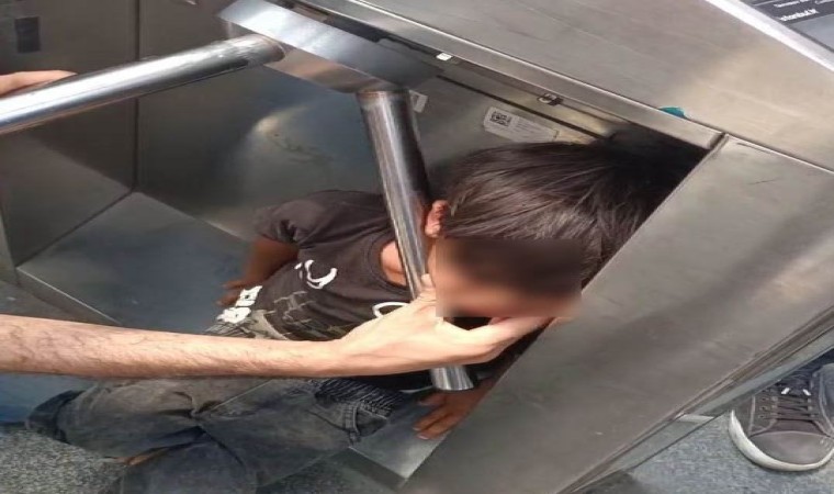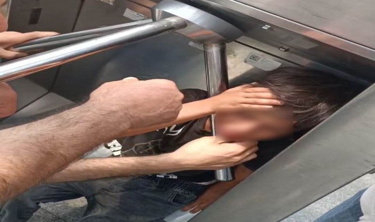 Karaköy tramvay durağında bir çocuk turnikenin altından geçerken başı demirlerin arasına sıkıştı. Vatandaşlar çocuğu sıkıştığı turnikeden kurtarmak için müdahale ederken, o anlar cep telefonu kamerasına yansıdı.