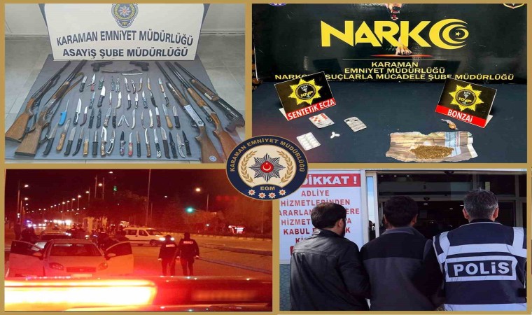 Karaman İl Emniyet Müdürlüğünün kent merkezinde asayiş uygulamaları aralıksız devam ediyor. Uygulamalarda uyuşturucu, ruhsatsız silah, çok sayıda bıçak ele geçirilirken, aranan şahıslar yakalandı.