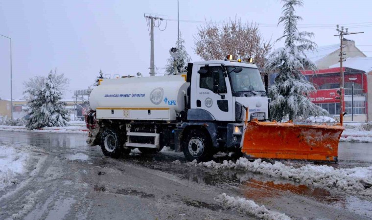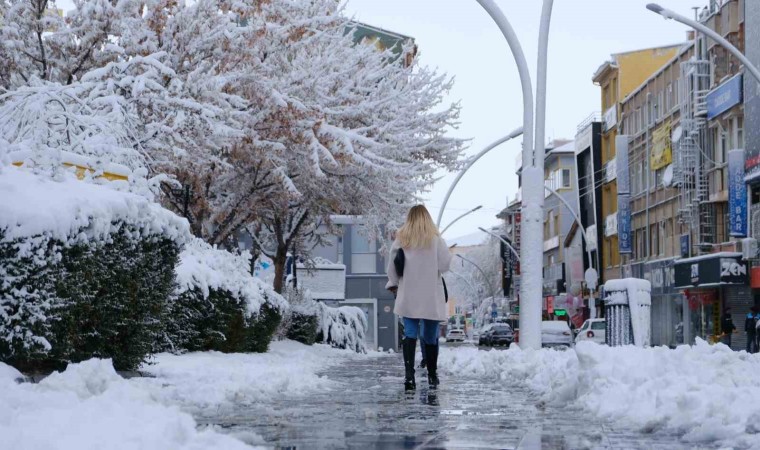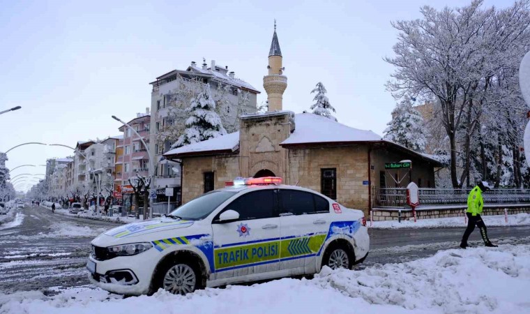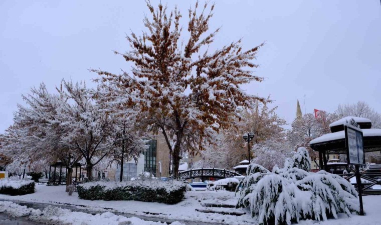 Karaman’da yoğun kar yağışı kenti beyaza bürüdü.