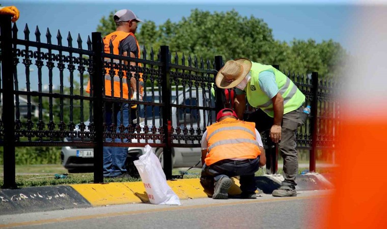 Sakarya Büyükşehir Belediyesi YOLBAK ekipleri, Yenikent’e ulaşımı sağlayan Sebahattin Zaim Bulvarı’nda trafiğin en yoğun olduğu Yazlık geçiş güzergahına yaya güvenliğini sağlamak için plastik bariyerler yerleştirdi.
