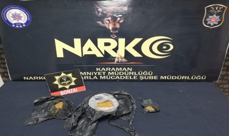 Edinilen bilgiye göre, Karaman İl Emniyet Müdürlüğü Narkotik Suçlarla Mücadele Şube Müdürlüğü ekiplerinin, uyuşturucu madde ticareti ve kullanılmasının önlenmesine yönelik yürüttüğü çalışmada, O.Ü., V.Y. ve E.Z. isimli şahıslar gözaltına alındı. Şahısların bulunduğu araçta arama yapan ekipler 3 paket halinde 112 gram bonzai maddesi ele geçirdi. Emniyetteki işlemlerin ardından adliyeye sevk edilen şüphelilerden E.Z. isimli kadın tutuklanarak cezaevine gönderilirken, diğer şahıslar serbest bırakıldı.