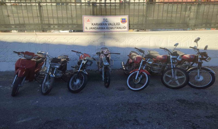 Karaman’da şase ve motor numaraları kazınmış motosiklet satan bir şüphelinin evine düzenlenen operasyonda 9 adet çalıntı motosiklet, tarihi heykel, Osmanlı dönemine ait sikke ve tarihi eser niteliğinde obje ele geçirildi.
