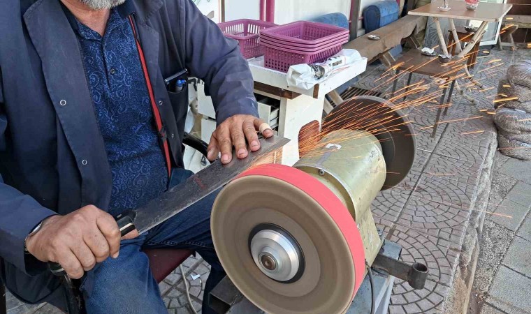 Karaman’da 40 yıldır bıçakçılık yaptığını söyleyen Keramettin Özel, “Bıçak bilemede önceki yıllara göre yoğunluk diye bir şey yok. İşimiz var ama önceki senelere göre az. Önüne çarkı alan bilemeci olmuş. Bizim gibi ustaların kıymetini bilmiyorlar. Bıçak bıçakçıdan alınır ve orada bilenir. Biz buradayız sizler için hizmet ediyoruz ama maalesef takdir görmüyoruz. Bıçağı bıçakçıya bileteceksin, eti de kasaba çektireceksin” diye konuştu.