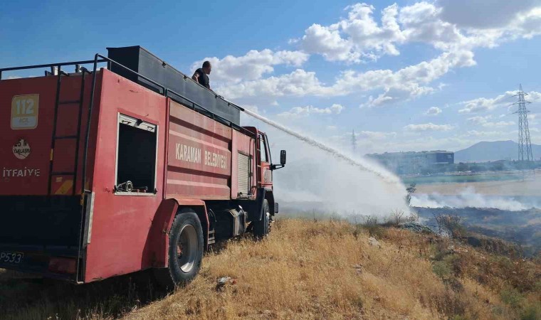 Karaman’da boş arazideki kuru otların tutuşması sonucu çıkan yangın, rüzgarın etkisiyle bir anda tüm alana yayıldı. İtfaiye ekiplerinin çalışması sonucu yangın kontrol altına alınarak söndürüldü.