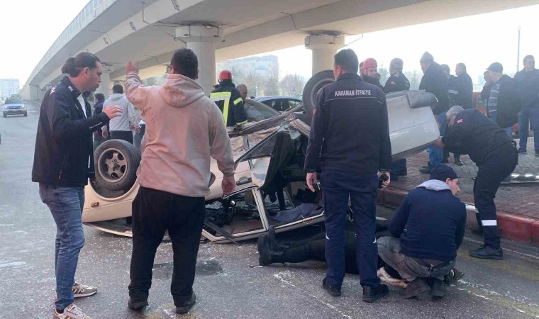 Karaman’da 2 otomobilin kavşakta çarpışması sonucu meydana gelen trafik kazasında can pazarı yaşandı. Kazada devrilen otomobilden çıkarılan 3 kişi kaldırıldıkları hastanede tedavi altına alındı.