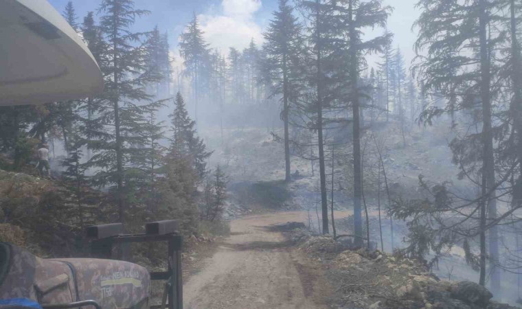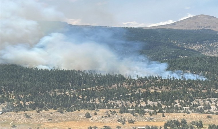Karaman’ın Ermenek ilçesinde çıkan orman yangınına karadan ve havadan müdahale ediliyor.