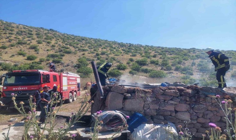 Karaman’da bağ evi henüz bilinmeyen bir nedenle çıkan yangında kullanılamaz hale geldi.