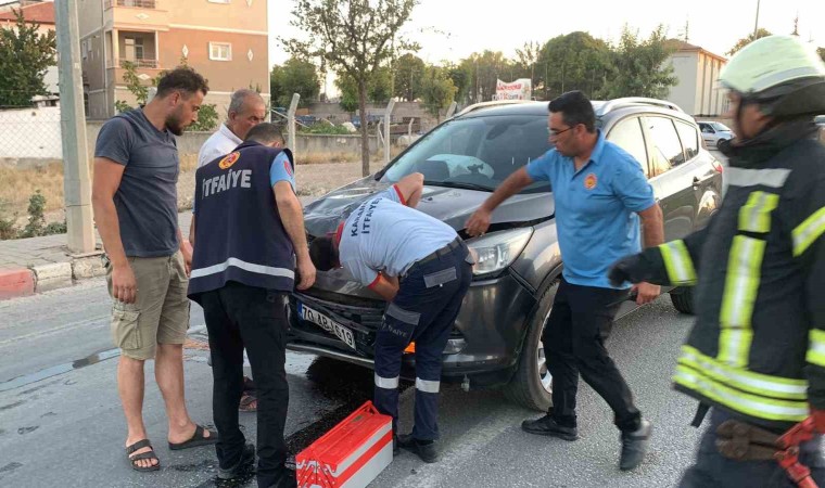 Kaza, Alacasuluk Mahallesi 100. Yıl Bulvarı üzerinde meydana geldi. Edinilen bilgiye göre, M.İ. idaresindeki 70 ABJ 619 plakalı Ford marka cip ile E.İ. yönetimindeki 70 FL 459 plakalı otomobil çarpıştı. Çarpışmanın etkisiyle savrulan 70 FL 459 plakalı otomobil orta refüje çıkarak yön levhalarına çarptı. Kazada 70 FL 459 plakalı otomobilin sürücüsü E.İ. ile cipte yolcu olarak bulunan S.İ. yaralandı. İhbar üzerine olay yerine sağlık, itfaiye ve polis ekibi sevk edildi. Kazada yaralananlar ambulansla Karaman Eğitim ve Araştırma Hastanesi’ne kaldırılarak tedavi altına alındı. Olay yerine gelen itfaiye erleri araçların akü başlıklarını sökerek müdahale etti. Kaza nedeniyle bir süreliğine trafiğe kapatılan yol araçların kaldırılmasının ardından yeniden ulaşıma açıldı.