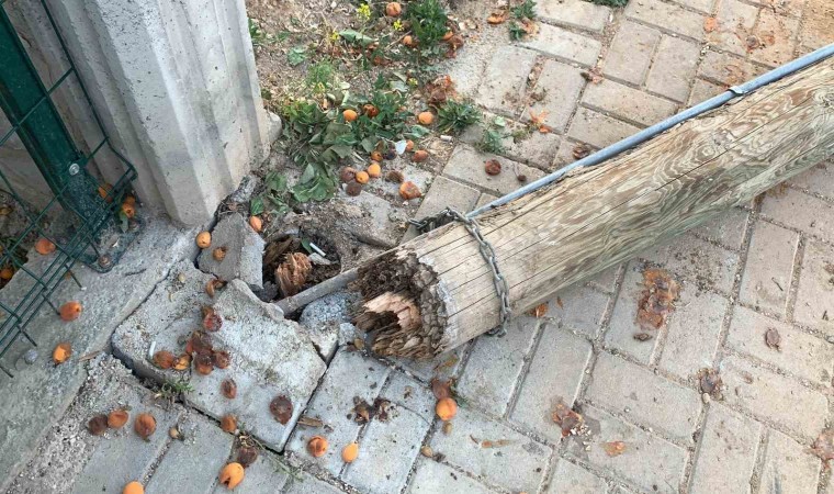 Olay, Zembilli Ali Efendi Mahallesi 710. Sokak’ta yaşandı. Edinilen bilgiye göre, çürüyen ağaç telefon direği bir anda kökünden kırılarak kaldırım üzerine devrildi. Direğin devrildiği esnada kaldırım üzerinde kimsenin bulunmaması muhtemel bir üzücü olayın önüne geçmiş oldu. Sokak sakinlerinin ihbarı üzerine olay yerine polis ekibi sevk edildi. Adrese gelen polis ekibi, direğin devrildiği bölgede çevre güvenliği aldı. Daha sonra gelen teknik ekip tarafından kırılan telefon direği ve kablolar sokaktan kaldırıldı.
