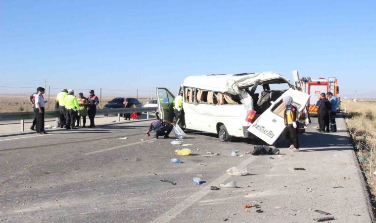 Karamanda lastiği patlayan minibüs devrildi: 1 ölü, 10 yaralı