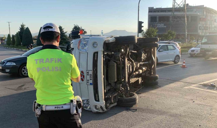Kaza, Atatürk Mahallesi Otogar kavşağında meydana geldi. Edinilen bilgiye göre, S.Ç. idaresindeki 06 FP 3186 plakalı Volkswagen marka otomobil ile R.E. yönetimindeki 70 HA 600 plakalı Hyundai marka kamyonet kavşakta çarpıştı. Çarpışmanın şiddetiyle kontrolden çıkan kamyonet devrilerek yaklaşık 40 metre sürüklendi. Kazada otomobilin sürücüsü S.Ç. yaralanırken kamyonetin sürücüsü kazayı yara almadan atlattı. İhbar üzerine olay yerine sağlık, itfaiye ve polis ekipleri sevk edildi. Kazada yaralanan otomobil sürücüsü S.Ç. ambulansla kaldırıldığı Karaman Eğitim ve Araştırma Hastanesi’nde tedavi altına alınırken, sağlık durumunun iyi olduğu öğrenildi. Kaza nedeniyle araç yoğunluğunun yaşandığı kavşakta polis ekipleri güvenlik önlemi aldı. Kazaya karışan araçların olay yerinden kaldırılmasının ardından trafik akışı normale döndü.