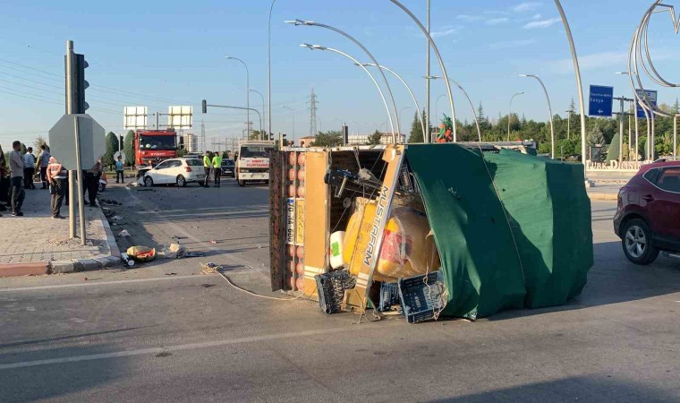 Karaman’da otomobil ile çarpıştıktan sonra devrilen kamyonet yaklaşık 40 metre sürüklenirken, kazada 1 kişi yaralandı.