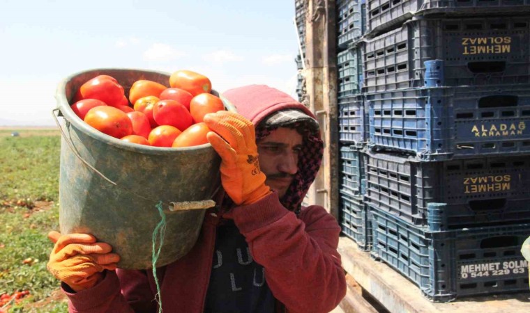 Karaman’da ekimi her yıl artan salçalık domates ve biberin hasadı başladı.