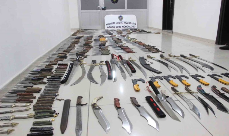 Karaman’da polisin 2 ayrı iş yerine düzenlediği operasyonda satışı yasak olan ve aralarında özel yapım bıçakların da bulunduğu 519 adet çeşitli kesici aletler ele geçirildi.