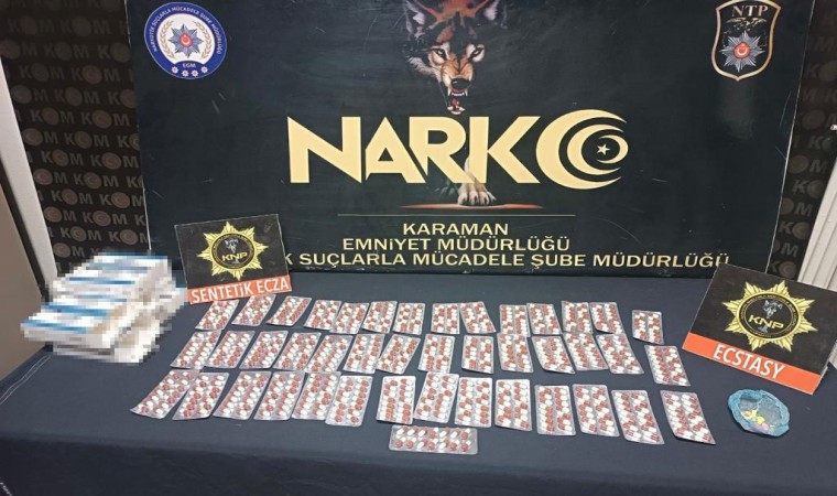 Edinilen bilgiye göre, İl Emniyet Müdürlüğü Narkotik Suçlarla Mücadele Şubesi ekipleri, kentte uyuşturucu ticareti yaptığı belirlenen şahıslara yönelik çalışma başlattı. Cumhuriyet Başsavcılığının koordinesinde yürütülen operasyonda M.K., A.V., M.Ş. ve M.A. isimli kişiler gözaltına alındı. Şüphelilerin gösterdikleri yerlerde yapılan aramalarda ise 602 adet sentetik ecza, 23 adet ecstasy, 70 gram metamfetamin, 0,90 gram bonzai ile 0,38 gram esrar ele geçirildi. Emniyetteki işlemlerinin ardından adliyeye sevk edilen şüpheliler çıkarıldıkları mahkemece tutuklanarak Karaman M Tipi Kapalı Cezaevine gönderildi.