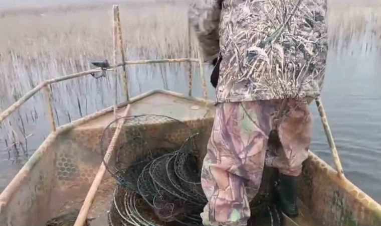 Afyonkarahisar Tarım ve Orman İl Müdürlüğü su ürünleri kontrol ekipleri göllere bırakılan ağ, tırıvırı ve pinterleri toplayarak imha etti.