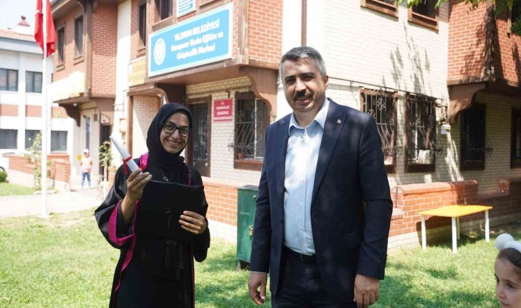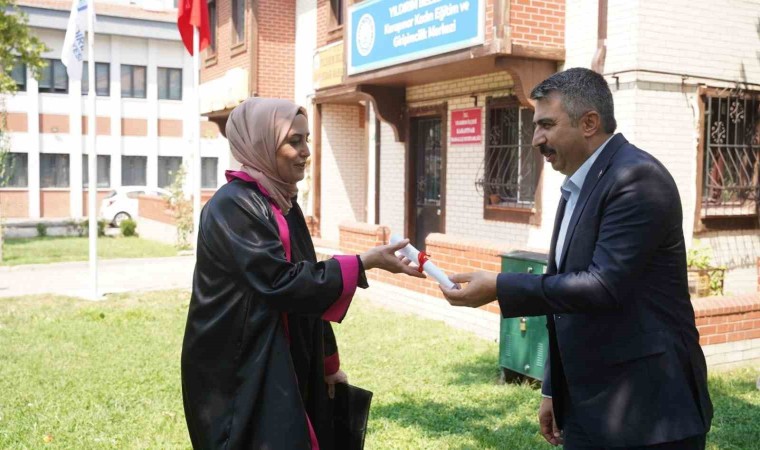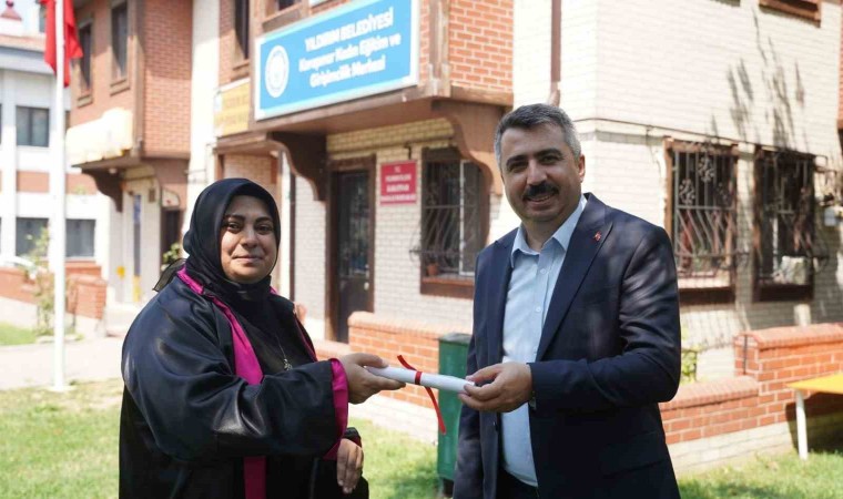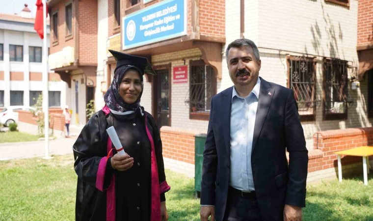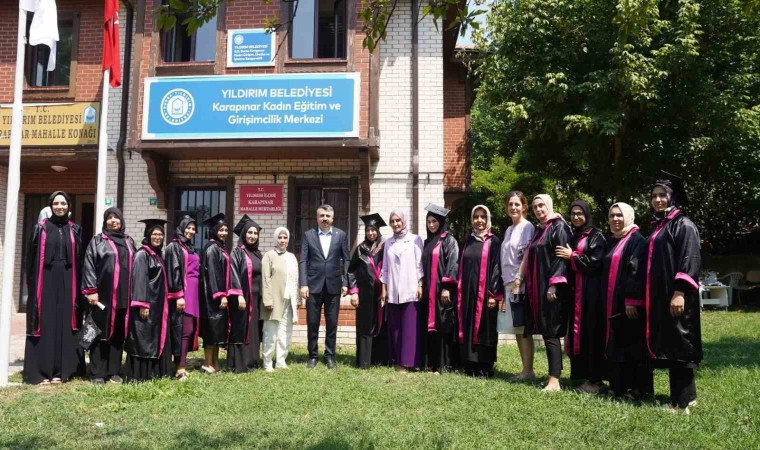 Yıldırım Belediye Başkanı Oktay Yılmaz, Karapınar Kadın Eğitim ve Girişimcilik Merkezi’nde giyim üretim teknolojileri alanında eğitimini başarı ile tamamlayarak mezun olan kadınların mutluluğunu paylaştı.