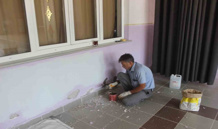 Konya’nın Karapınar ilçesinde 16 derslikli İbrahim Gündüz Anadolu Lisesinin boya badana işlerini okul müdürü, müdür yardımcısı, öğretmenler ve hizmetli birlikte yapıyor.