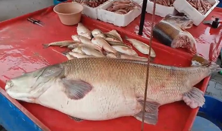Erzincan’da yaklaşık 40 yıldır balıkçılıkla uğraşan Erdoğan Mercan, Kemaliye’den de geçen Karasu Nehri’nde balık avlamaya gitti. Mercan, burada avladığı dev turna balığını tezgâhında sergileyerek satışa çıkardı. Yoldan geçen vatandaşlarda dev balığı büyük bir ilgi ile izledi. Yaklaşık 110 kilo, 1 metre 50 santim uzunluğunda olan balığın etrafında toplanan vatandaşlar hayretlerini gizleyemedi. İlk defa dev bir balık gördüklerini söyleyen vatandaşlar dikkatle inceledikleri balığın fotoğraf ve videosunu çekerek anı ölümsüzleştirdi. Balıkçı Erdoğan Mercan konuşmasında, turna balığını yakalamanın zor olduğunu, yakaladığı balığın kilosunun ise 250 liradan satışa sunulduğunu belirterek, “Öyle herkesin yakalaması mümkün değil. Bu balık 100-110 kilo civarında. Kırmızı etten ucuza satıyoruz. Et 400 lira, bu balık 250 lira” dedi.