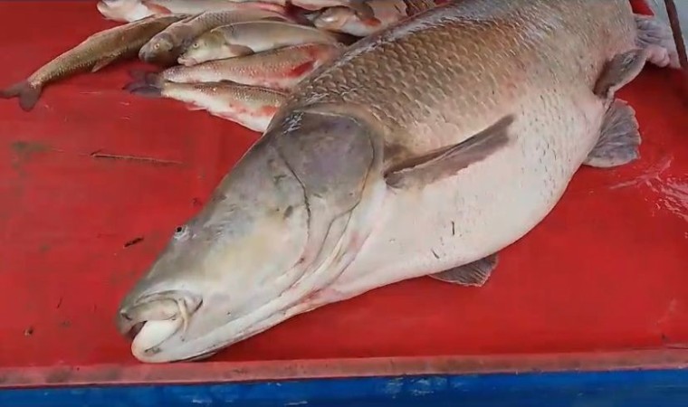 Erzincan’ın Kemaliye ilçesinde Karasu Nehri’nde bir balıkçının oltasına 110 kiloluk Fırat turnası balığı takıldı.
