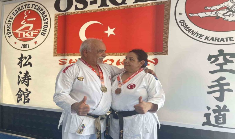 Osmaniye’de karate salonunda tanışarak evlenen Ali ve Hayriye Tabak çifti, Bursa’nın Gemlik ilçesinde düzenlenen Uluslararası Gemlik Karate Turnuvası’nda derece elde etti.