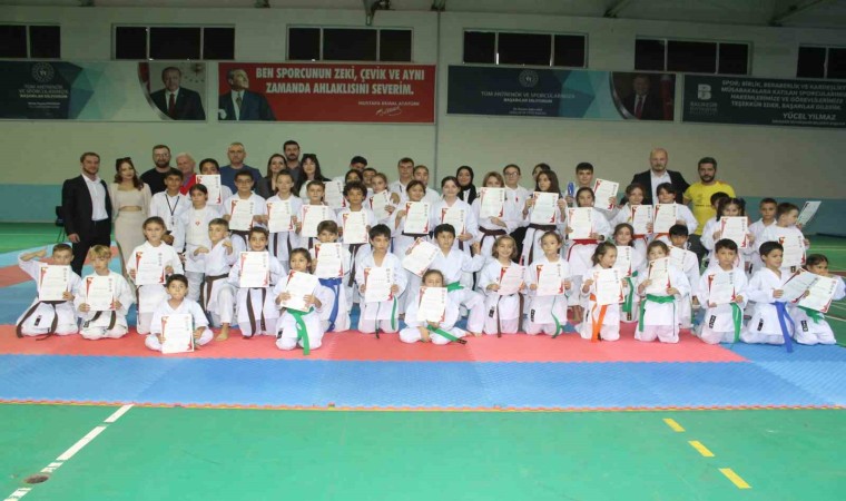 Manyas Belediye Spor Karate takımı sporcularının kuşak sınavları Manyas spor salonunda yapıldı. Manyas Belediye Spor Karate takımı ile Gönen Karate takımı sporcularının üçüncü dönem kuşak sınavına 80 sporcu katıldı. Çocuklarının kuşak sınavı heyecanına ortak olmak için salona gelen aileler sınav sırasında çocuklarına destek verdiler. Kuşak sınavı sonrası 10 sporcu beyazdan, sarıya, 6 sporcu sarıdan,turuncuya,15 sporcu turuncudan yeşile, 14 sporcu yeşilden, mavi kuşağa, 15 sporcu maviden, kahverengiye 25 sporcu ise kahverengi kuşak sınavına katıldılar. Kuşak sınavı sonrası yapılan karate şampiyonasına ise 100 sporcunun katıldığı açıklandı. Kuşak sınavı ve Cumhuriyet Bayramı karate turnuvasında başarılı olan ve dereceye giren karatecilere Gençlik Hizmetleri ve Spor Müdürü Kudret Eğen ile diğer konuklar tarafından kuşakları, başarı belge ve madalyaları verildi.