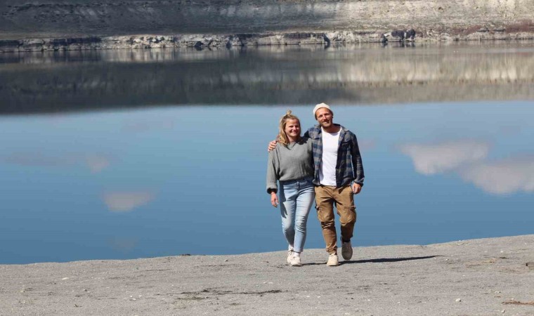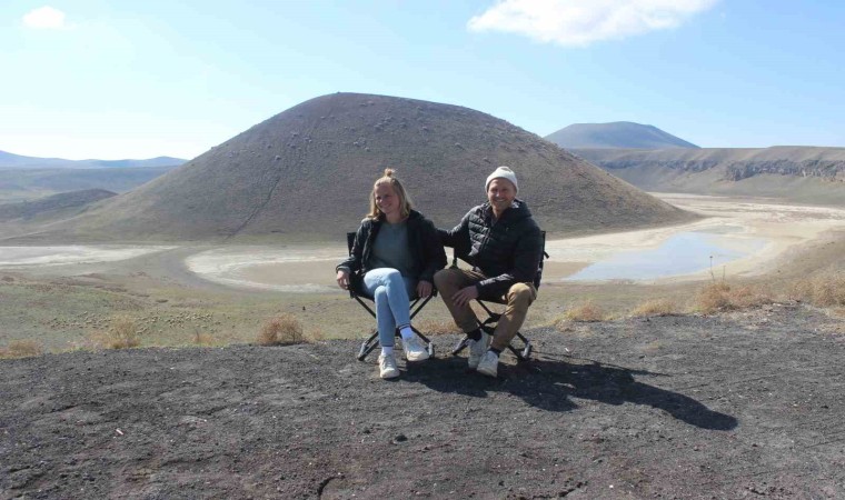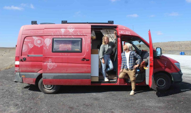 Almanya’da özel bir şirkette çalışan Alman çift merak ettikleri Türkiye’yi görmek için iş yerlerinden 5 ay izin alarak yola çıktı. Bir çok Avrupa ülkesini gezen Sımone Schwarz ile Martin Brosig Türkiye’de de bir çok yer gezdi. "Muhteşem gün doğumları ve gün batımları, dalgaların sesi ve sadece denizin harika manzarasıyla biz mükemmel bir anı biriktirdik" diyen Alman çift, Şubat ayı başında işten 5 ay ücretsiz izin alıp, geçmiş yılların birikimini yaparak yola çıktılarını ifade etti. Ana varış noktaları olan Türkiye hakkında çok şey okuduklarını ve gezilecek çok fazla doğal güzelliğin olduğu söyleyen Alman çift, "İtalya’dan feribotla Yunanistan’a gittik ve orada 1 ay geçirdik. Daha sonra feribotla Sakız Adası’na doğru devam ederek 7 Mart’ta Çeşme’ye vardık. Oradan Pamukkale, Salda Gölü ve sahil boyunca Itzuzu Plajı, Kayaköy, Pataras Plajı, Kaş, Olympos, Taki Kanyonu ve şimdi de Meke Gölü’ne geldik. Daha sonra masmavi suları ile Acıgöl’ü gezdik. Burada suyun yansıması harikaydı. Soğuk olduğu için yüzemedik ve buna üzüldük. 2.5 haftadır yollardayız ve toplamda 5-6 haftayı Türkiye’de geçirmeyi planlıyoruz. Nisan ayı ortalarına kadar Türkiye’nin eşsiz güzelliklerini gezeceğiz" dedi.