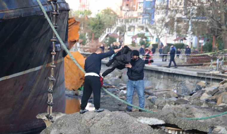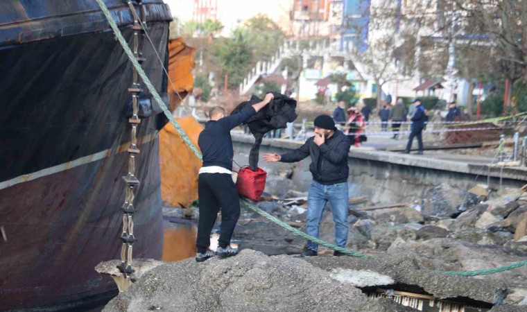 Zonguldak’ın Ereğli ilçesinde sürüklenerek karaya oturan ve ikiye bölünen Pallada isimli kuru yük gemisinin personeli gemide kalan eşyalarını aldı. Geminin etrafına bariyer çekilirken dehşet anlarını yaşayan gemi personeli o anları gazetecilere anlattı.