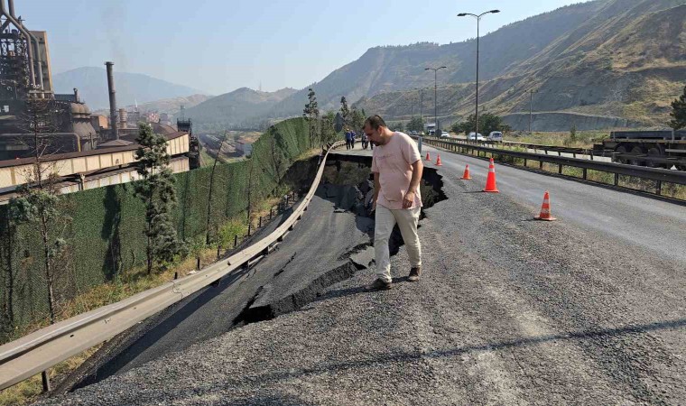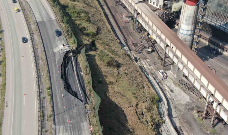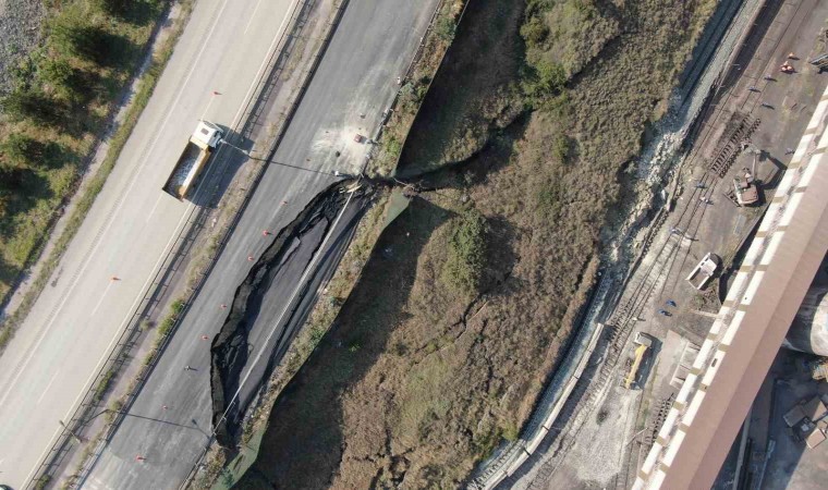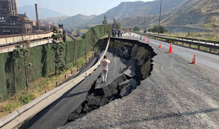 Karayolunun tamamen kapanması sonucu Karayolları ekipleri bölgede önlemlerini artırarak, çalışmalara başlarken, yaşanan çökme ve heyelanın meydana geldiği bölge ise dron ile görüntülendi.