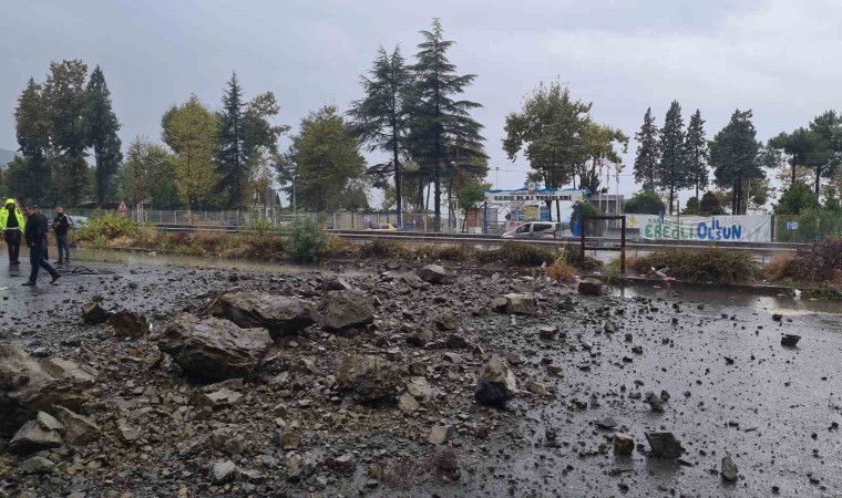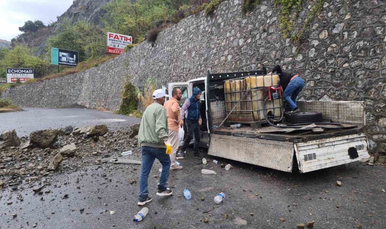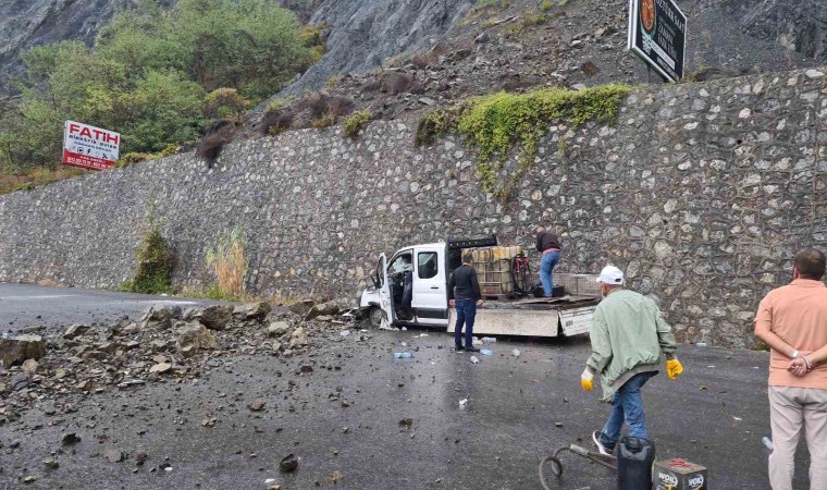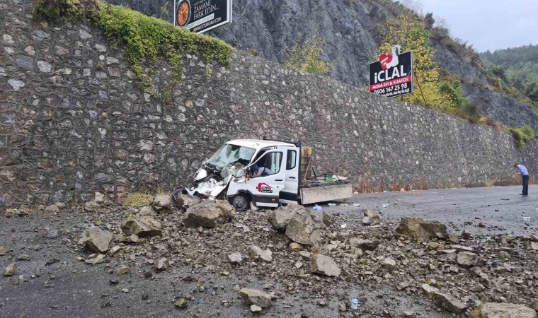 Yamaçtan kopan kaya parçaları karayoluna düştü. Bu sırada Kdz. Ereğli istikametine seyreden 67 LB 903 plakalı kamyonetin üzerine gelen kaya parçaları araçta maddi hasara neden oldu.