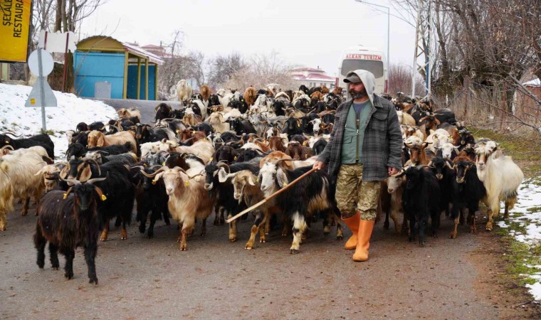 Araç sürücüleri durarak keçi sürüsünün ardından yola devam etti.