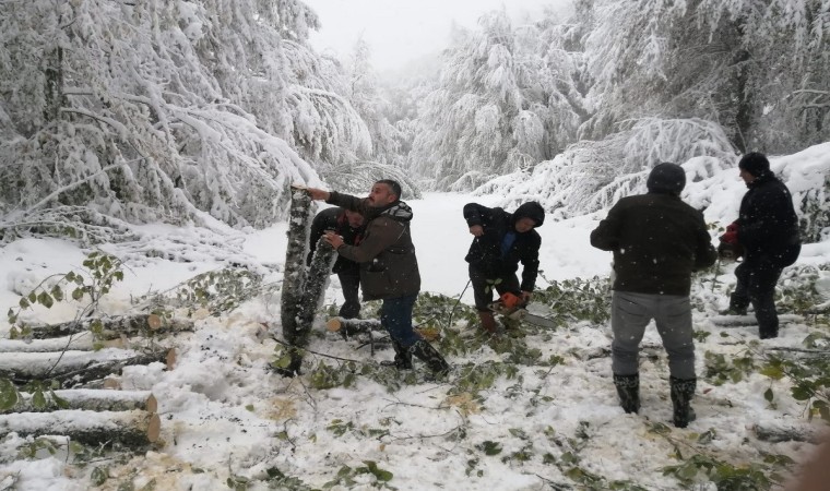 Bolu’da pazar günü etkili olan yoğun kar yağışı ve tipi nedeniyle kapanan yollarda Bolu Orman Bölge Müdürlüğü ekipleri, mahsur kalan onlarca vatandaşın kurtarıldığını açıkladı. Balıklı yaylası ile Taşkesti arasındaki yol güzergahında mahsur kalan vatandaşların yardımına Taşkesti Orman İşletme Müdürlüğünde görevli ormancılar yetişti. Gelen ihbarı değerlendiren Taşkesti Orman İşletme Müdürlüğü personeli işletme müdürlüğüne ait bir adet greyder ve bir adet hizmet vasıtasıyla olay yerine ulaşmak için harekete geçti. Ekipler, yaklaşık 4 saat süren çalışma sonunda yolda mahsur kalan otomobil ve içindeki 3 kişi ile kamyon ve şoförünü mahsur kaldığı yerden kurtardı. Taşkesti Orman İşletme Müdürlüğüne bağlı ekipler karda mahsur kalan vatandaşlara Taşkesti beldesine kadar eşlik ederek sağ salim ulaşmalarını sağladı.