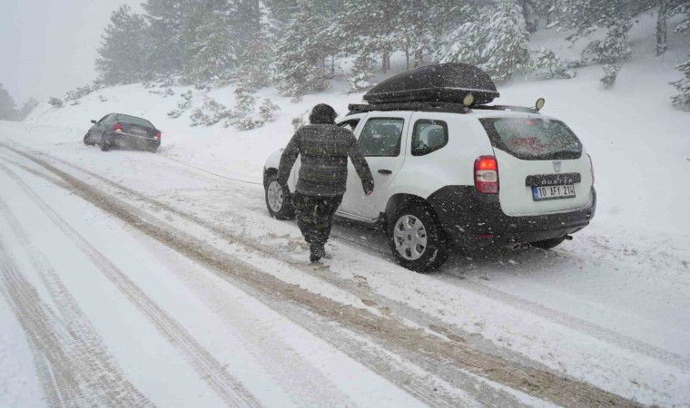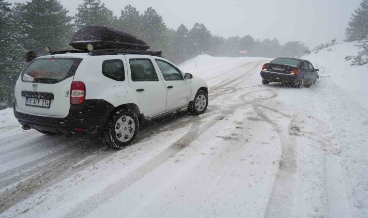 Balıkesir’in Edremit ilçesi ile Çanakkale’nin Yenice ilçesi arasındaki yolda yoğun kar yağışı nedeniyle yoldan çıkarak mahsur kalan sürücüyü Kalkım Belediye Başkanı İbrahim Taşkın kurtardı.