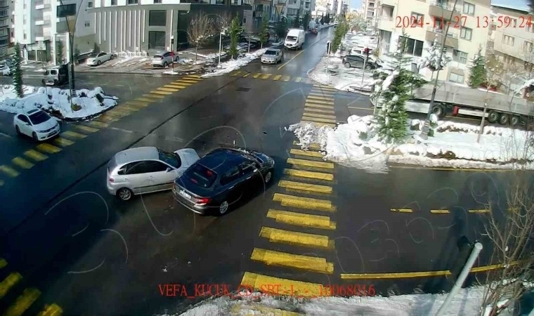 Nevşehir’de meydana gelen maddi hasarlı trafik kazaları Kent Güvenlik Yönetim Sistemi (KGYS) kameralarına yansıdı. Görüntüye yansıyan kazalardan birinde kazaya karışan bir otomobilin üzerine yağan karın temizlenmediği ve camların kardan kaplı olduğu görüldü.